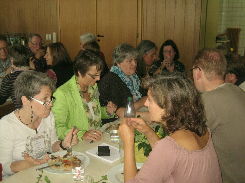 Wir waren die “jüngste” Gruppe mit 17 Absolventen aus den Jahrgängen um 1990. Es bestand sogleich eine vertraute Atmosphäre, die sich dann auch in einer großen Offenheit und Mitteilbereitschaft deutlich zeigte. Nur zwei “gelbe Karten” waren nötig, um hier und da zu bremsen. Und so begonnen die persönlichen Gespräche gleich nach Beendigung der Austauschrunde und wir freuten uns auf das Vertiefen der Gespräche während des verbleibenden Wochendendes.